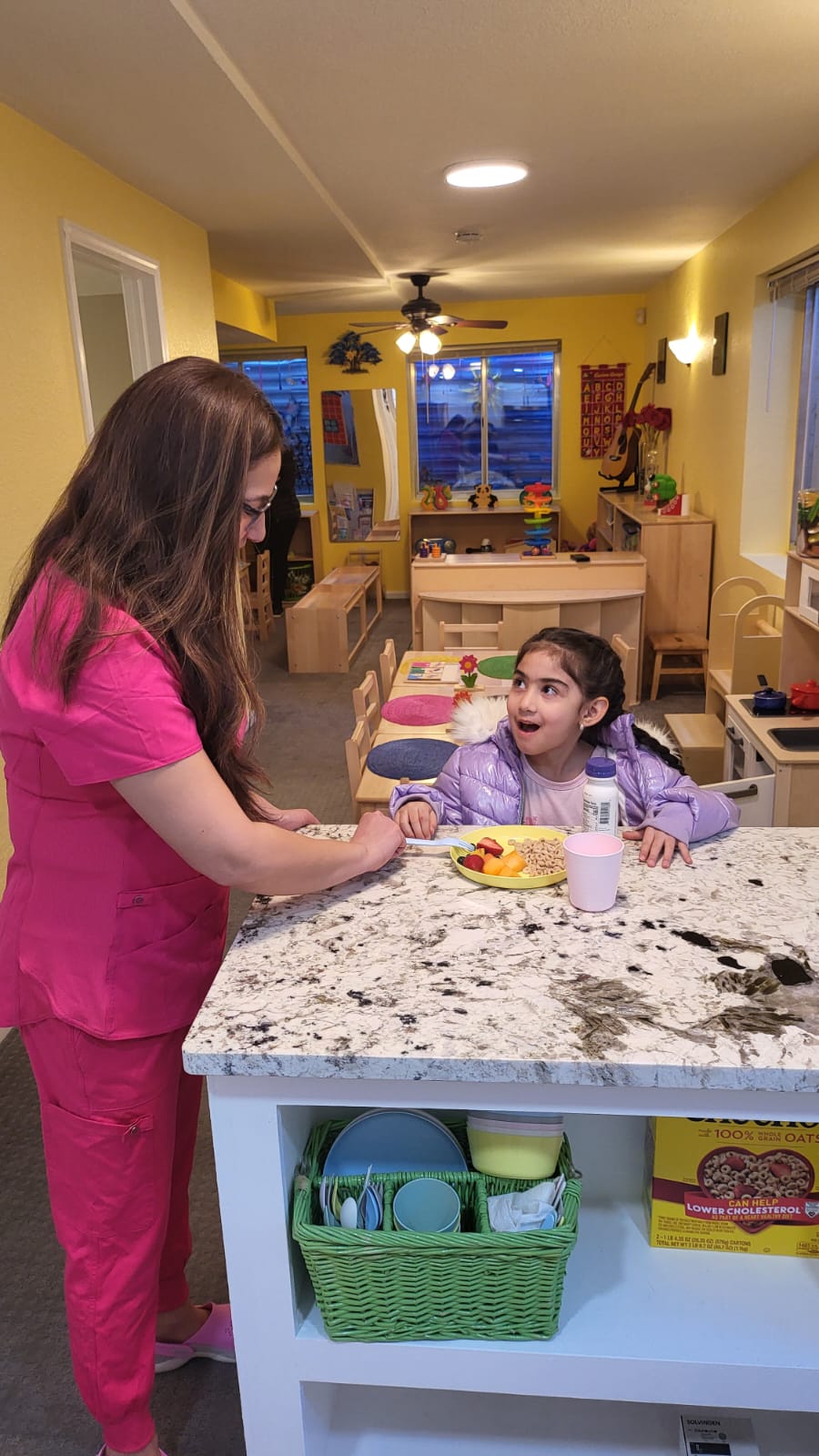 She is a licensed childcare provider and is knowledgeable in the teaching of the Montessori Method. Although her first language is Spanish she is fluent in English and she loves to teach both languages to the little ones.